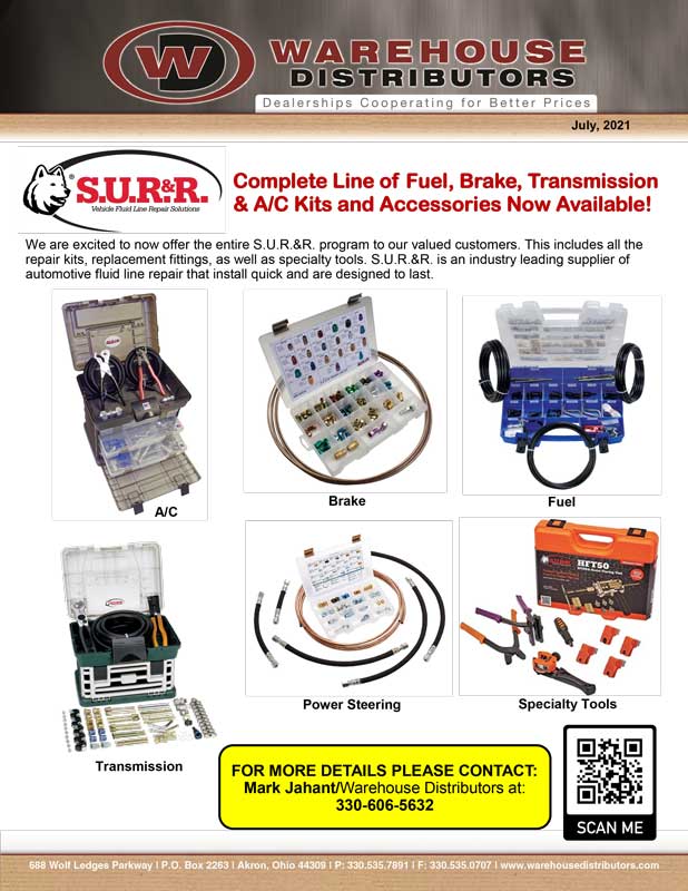 We are excited to now offer the entire S.U.R.&R. program to our valued customers. This includes all the repair kits, replacement fittings, as well as specialty tools. S.U.R.&R. is an industry leading supplier of automotive fluid line repair that install quick and are designed to last.